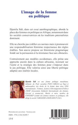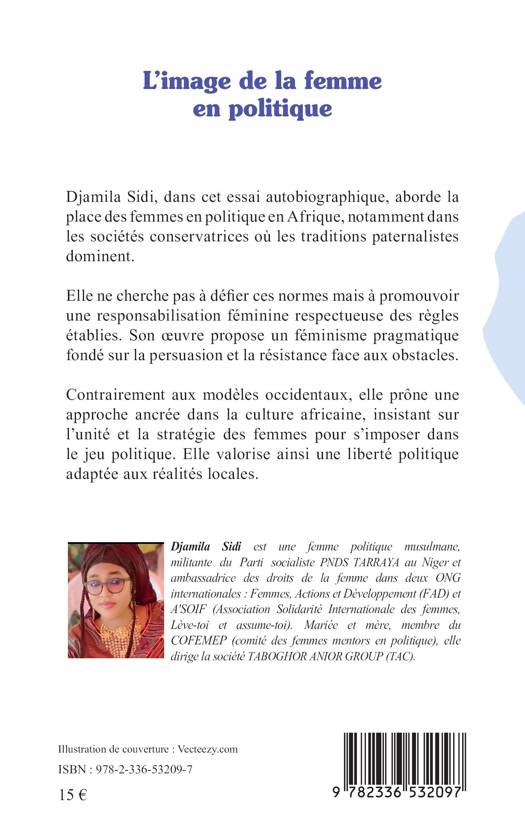 Djamila Sidi, dans cet essai autobiographique, aborde la place des femmes en politique en Afrique, notamment dans les sociétés conservatrices où les traditions paternalistes dominent. Djamila Sidi, dans cet essai autobiographique, aborde la place des femmes en politique en Afrique, notamment dans les sociétés conservatrices où les traditions paternalistes dominent. Contrairement aux modèles occidentaux, elle prône une approche ancrée dans la culture africaine, insistant sur l'unité et la stratégie des femmes pour s'imposer dans le jeu politique. Elle valorise ainsi une liberté politique adaptée aux réalités locales.