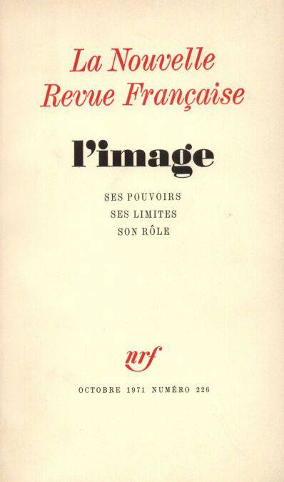La littérature : André Pieyre de Mandiargues, L'imager Jacques-Pierre Amette, L'influence à combattre Jean Dutourd, Aucune influence Jean Blot, De l'image à l'image Guy Rohou, L'image en miettes Roger Judrin, Les images et l'imagination Daniel Boulanger, La page et l'écran Alain Clerval, Images subversives Jacques Réda, La ville blanche Jacques Borel, L'image, la déchirure Pierre Bourgeade, La révolution Michel Deguy, L'imagerie Manuel de Diéguez, Image et absence