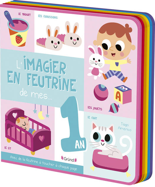 Pour chaque page, une couleur différente pour découvrir, toucher et apprendre les premiers mots du quotidien des enfants de 1 an.
