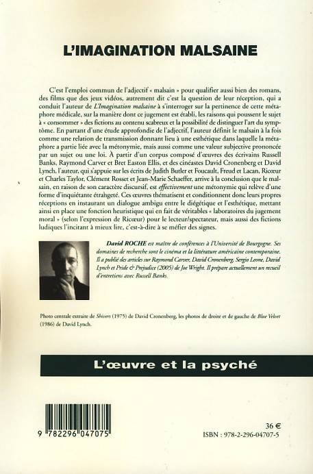 A partir d'un corpus composé d'oeuvres des écrivains Russell Banks, Raymond Carver et Bret Easton Ellis et des cinéastes David Cronenberg et David Lynch, s'appuyant sur les écrits de J. Butler, Foucault, Freud, Lacan, Ricoeur, Charles Taylor, C. Rosset et J.-M. Schaeffer, l'auteur propose dans cet ouvrage une réflexion sur la notion de"malsain". L'auteur s'interroge sur la pertinence de cette métaphore médicale, sur les raisons qui poussent le sujet à "consommer" des fictions au contenu scabreux et sur la possibilité de distinguer l'art du symptôme.