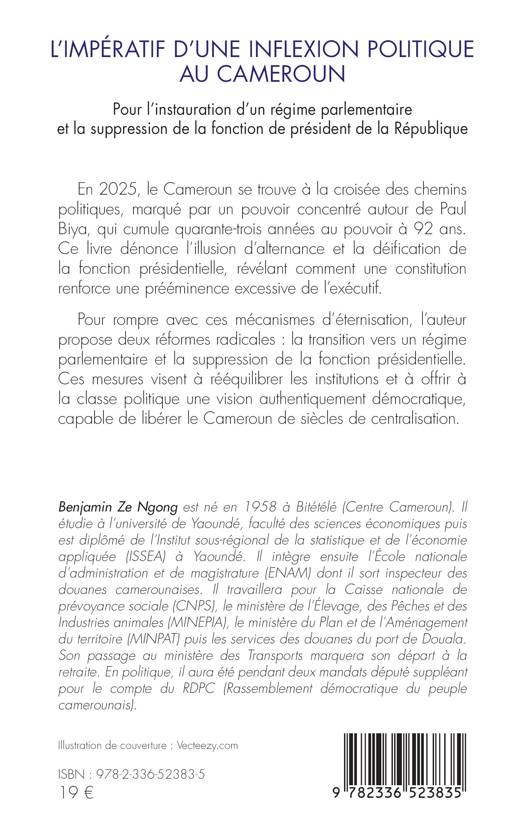 En 2025, le Cameroun se trouve à la croisée des chemins politiques, marqué par un pouvoir concentré autour de Paul Biya, qui cumule quarante-trois années au pouvoir à 92 ans. Ce livre dénonce l'illusion d'alternance et la déification de la fonction présidentielle, révélant comment une constitution renforce une prééminence excessive de l'exécutif. Pour rompre avec ces mécanismes d'éternisation, l'auteur propose deux réformes radicales: la transition vers un régime parlementaire et la suppression de la fonction présidentielle. Ces mesures visent à rééquilibrer les institutions et à offrir à la classe politique une vision authentiquement démocratique, capable de libérer le Cameroun de siècles de centralisation.