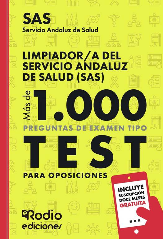 Ponemos a tu disposición este eficaz manual para que puedas evaluarte en los contenidos fundamentales de los veinte temas del programa oficial de la categoría de **Limpiador a del Servicio Andaluz de Salud (SAS).**El volumen incluye **Más de 1.000 preguntas de examen tipo test de los 20 temas**, con cuatro respuestas alternativas, lo cual constituye un eficaz complemento para afianzar los contenidos del programa oficial.Consideramos que te ofrecemos un manual de test muy válido para practicar tus conocimientos sobre la materia solicitada y, de este modo, puedas presentarte a la prueba selectiva con una sólida preparación.Deseamos que, con este material, alcances el mayor de los éxitos.