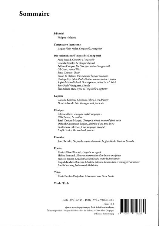 Un numéro consacré à la notion lacanienne de malaise de civilisation, d'angoisse et d'impossible à supporter, qu'il considérait comme un symptôme de la liberté de la parole.