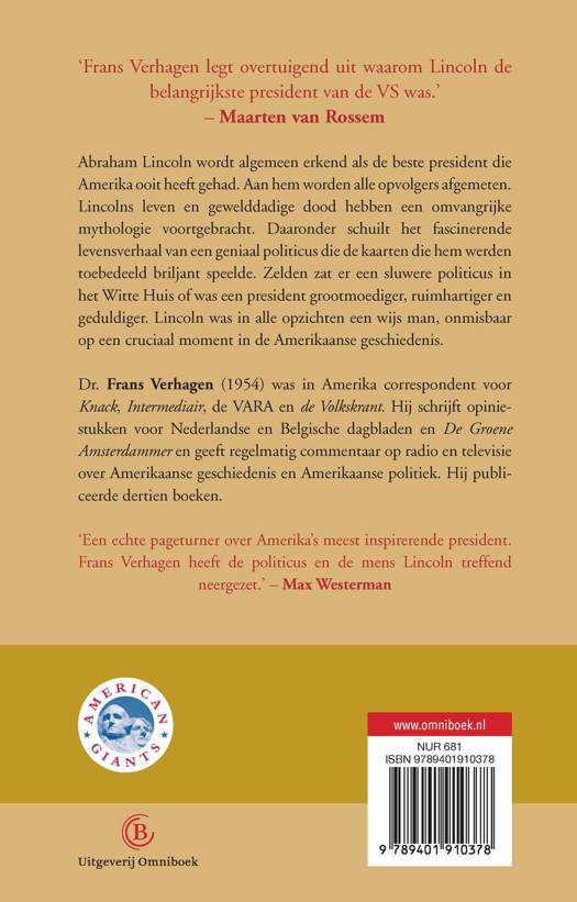 'Frans Verhagen legt overtuigend uit waarom Lincoln de belangrijkste president van de VS was.' – Maarten van Rossem.