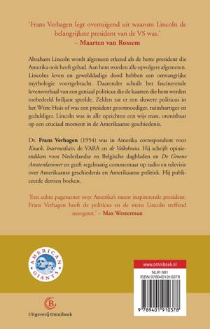 In deze biografie vertelt Amerikakenner Frans Verhagen het fascinerende levensverhaal van Abraham Lincoln en hoe dat zijn presidentschap bepaalde. Het brengt ook zijn geniale politieke inzicht voor het voetlicht. Lincoln was een wijs man, grootmoedig en geduldig. Maar ook sluw, manipulatief, zelfs machiavellistisch. Hij was modern voor zijn tijd: Lincoln zag de macht van media in, maakte veelvuldig gebruik van het nieuwe middel van de fotografie en was een geweldig redenaar. In de Burgeroorlog bleef Lincoln koste wat kost vasthouden aan het behoud van de Unie. Hij accepteerde niet dat Amerika uiteen viel. Lincoln maakte de afschaffing van slavernij pas in een laat stadium deel van de strijd. Daardoor kon hij de eenheid van het land als prioriteit behouden. Pas toen die eenheid gegarandeerd was, voegde hij afschaffing van de slavernij toe aan de doelstellingen. Zo won het Noorden onder Lincoln niet alleen de Burgeroorlog maar hij zorgde er ook voor dat Amerika bij elkaar bleef en meer dan ooit één land werd. Een paar dagen na het einde van de Burgeroorlog werd Lincoln vermoord. Zo werd hij een martelaar voor een verenigd land, door alle Amerikanen erkend als de belangrijkste president die Amerika ooit gehad heeft. En de beste. Geen wonder dat zijn opvolgers altijd aan Lincoln zullen worden gemeten.