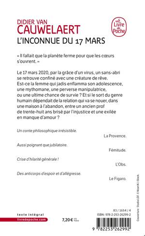 Le 17 mars 2020, par la grâce d'un virus, un sans-abri se retrouve confiné avec une créature de rêve. Est-ce la femme qui jadis enflamma son adolescence, une mythomane, une perverse manipulatrice, ou une ultime chance de survie ? Et si le sort du genre humain dépendait de la relation qui va se nouer, dans une maison à l'abandon, entre un ancien prof de trente-huit ans brisé par l'injustice et une exilée en manque d'amour ?