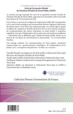 Loin d'être une notion univoque, au contenu figé et auquel il suffirait de comparer le fond du droit d'un Etat ou d'un système juridique, l'indépendance de la justice pose de nombreux problèmes - tant dans sa définition que dans l'intérêt doctrinal qu'elle suscite ou la mesure de son degré de concrétisation en droit positif.
