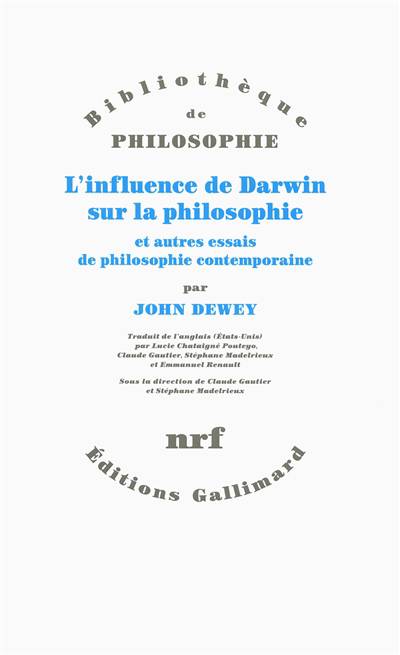 Darwin est le nom d'une révolution. Mais pour le philosophe américain John Dewey, né l'année de la publication de L'Origine des espèces, en 1859, et mort près d'un siècle plus tard en 1952, il ne s'agit pas seulement d'une révolution scientifique concernant notre compréhension des espèces végétales et animales. Il s'agit d'une révolution intellectuelle dont on n'a pas encore suffisamment pris la mesure philosophique ni tiré toutes les conséquences théoriques et pratiques : "En touchant à l'arche sacrée de la permanence absolue, et en considérant comme ayant une origine et un terme les formes qui avaient été conçues comme des types de fixité et de perfection, L'Origine des espèces a introduit une manière de penser qui, finalement, ne pouvait que transformer la logique de la connaissance, et ainsi le traitement des questions morales, politiques et religieuses." Il n'est pas question d'appliquer telle quelle la théorie darwinienne aux problèmes que posent la connaissance, la morale, la politique ou la religion, mais d'opérer dans ces domaines le même type de volte-face intellectuelle qu'il a fallu à Darwin pour accoler ensemble les deux termes d' "origine" et d' "espèce". Ces essais que Dewey réunit en 1910 montrent le caractère obsolète et inadapté d'une grande partie de notre bagage intellectuel et posent les premiers jalons, avant les grandes oeuvres de la maturité, pour reconstruire les outils conceptuels dont nous avons besoin pour vivre et penser dans un monde post-darwinien. Dans leur injonction à reconstruire la philosophie en abandonnant toute quête de certitude, ils ont valeur de manifeste de l'oeuvre tout entière.