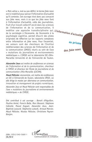 "Mot-valise", mal ou pas défini, le terme fake news est ici mobilisé pour penser l'information d'actualité qu'il conteste. Cet ouvrage n'est donc pas consacré aux fake news, mais à ce que les fake news font à l'information d'actualité, celle des journalistes. Il mobilise une approche transdiciplinaire qui, de la sociologie à l'économie, de l'économie à la psychologie cognitive permet d'ouvrir des pistes originales de réflexion sur les rapports complexes entre information et fake news.