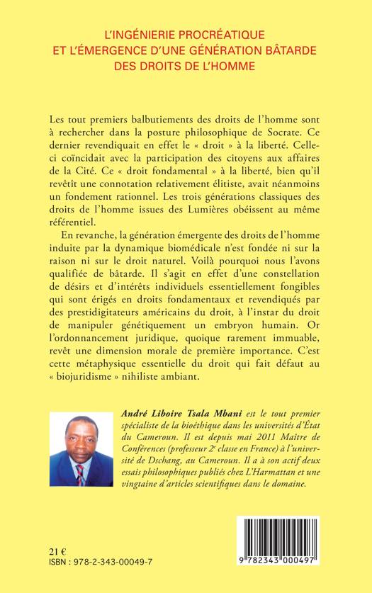 La génération émergente des droits de l'homme, notamment celle qui est induite par la dynamique biomédicale, n'est fondée ni sur la raison ni sur le droit naturel : elle est donc bâtarde. Il en est ainsi du droit de manipuler génétiquement un embryon humain revendiqué par les partisans de l'ingénierie de la procréatique. Contre ce " biojuridisme nihiliste ", une thérapie éthique de choc s'impose.