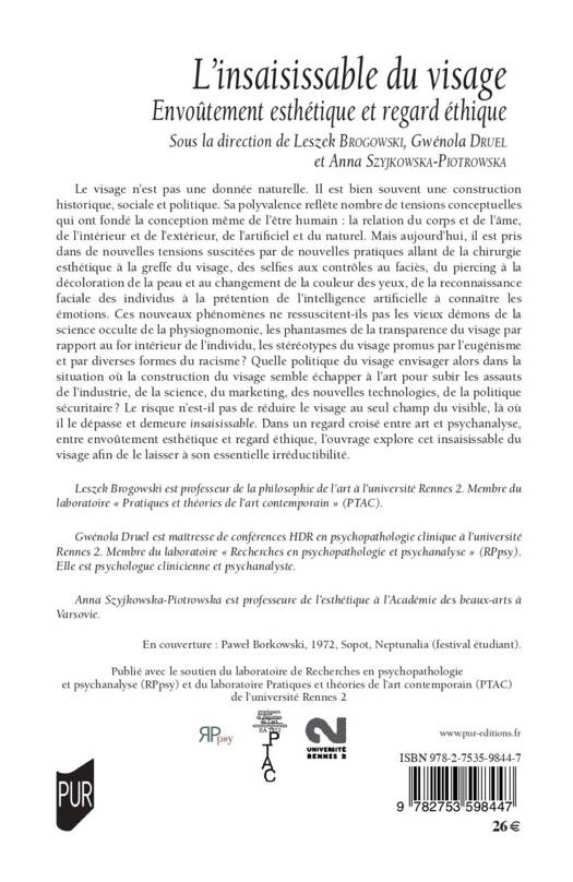 Le visage n’est pas une donnée naturelle. Il est bien souvent une construction historique, sociale et politique. Sa polyvalence reflète nombre de tensions conceptuelles qui ont fondé la conception même de l’être humain : la relation du corps et de l’âme, de l’intérieur et de l’extérieur, de l’artificiel et du naturel. Mais aujourd’hui, il est pris dans de nouvelles tensions suscitées par de nouvelles pratiques allant de la chirurgie esthétique à la greffe du visage, des selfies aux contrôles au faciès, du piercing à la décoloration de la peau et au changement de la couleur des yeux, de la reconnaissance faciale des individus à la prétention de l’intelligence artificielle à connaître les émotions. Ces nouveaux phénomènes ne ressuscitent-ils pas les vieux démons de la science occulte de la physiognomonie, les phantasmes de la transparence du visage par rapport au for intérieur de l’individu, les stéréotypes du visage promus par l’eugénisme et par diverses formes du racisme? Quelle politique du visage envisager alors dans la situation où la construction du visage semble échapper à l’art pour subir les assauts de l’industrie, de la science, du marketing, des nouvelles technologies, de la politique sécuritaire? Le risque n’est-il pas de réduire le visage au seul champ du visible, là où il le dépasse et demeure insaisissable. Dans un regard croisé entre art et psychanalyse, entre envoûtement esthétique et regard éthique, l’ouvrage explore cet insaisissable du visage afin de le laisser à son essentielle irréductibilité.