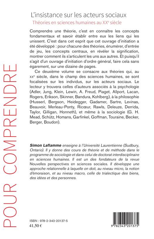 Comprendre une théorie, c'est en connaître les concepts fondamentaux et savoir établir entre eux les liens qui les unissent. C'est dans cet esprit que cet ouvrage d'initiation a été développé : pour chacune des théories, énumérer, d'entrée de jeu, les concepts centraux et révéler la signification, montrer comment ils s'articulent les uns les autres. Ce deuxième volume se consacre aux théories qui, au XXe siècle dans le champ des sciences humaines, se sont focalisées sur les individus, sur les acteurs sociaux.