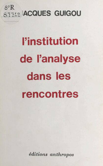 Centre d'intérêt principal de cet ouvrage, l'analyse institutionnelle est, elle aussi, « intégrée » à ce processus, comme une branche particulière des sciences sociales. Pourtant, lorsqu’à la faveur d'une « crise » dans un lycée, un hôpital, une caserne, la mise en mouvement d'une association d'individus libres crée une situation nouvelle, toute la pratique sociale de l'établissement est alors, collectivement, analysée et dérangée : c'est la rencontre instituante. À partir de sa pratique socianalytique, d'une critique des interprétations psychanalytiques du groupe, et d'une réflexion sur son implication personnelle, Jacques Guigou nous propose une nouvelle théorie de l'instituant. De ce renversement de perspective, dans la vie des groupes et des organisations, il émerge un projet ici argumenté et évalué : celui d'une autogestion généralisée de l'institution de l'analyse dans des rencontres sociales autonomes.
