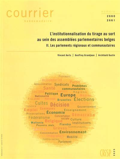 Ce Courrier hebdomadaire analyse la progressive institutionnalisation de mécanismes de tirage au sort de citoyens au sein des assemblées parlementaires belges. Il met ainsi en lumière un mouvement inégal mais réel vers une participation citoyenne renouvelée, dont il éclaire les enjeux philosophiques, politiques et institutionnels.