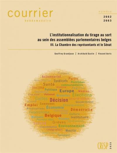 En Belgique, l’idée de désigner des responsables politiques par le moyen d’un tirage au sort parmi les citoyens connaît un important regain d’intérêt depuis une quinzaine d’années. Des citoyens, des chercheurs et des responsables politiques mettent en avant son potentiel pour faire face à la crise de la démocratie représentative. Les dispositifs recourant au tirage au sort se multiplient à tous les niveaux de pouvoir (avec, cependant, une différence marquée entre le sud et le nord du pays). Il s’agit essentiellement de compléter le système électoral par la création de panels ou conseils citoyens liés aux instances législatives. Ce Courrier hebdomadaire analyse la progressive institutionnalisation de mécanismes de tirage au sort de citoyens au sein des assemblées parlementaires belges. Il met ainsi en lumière un mouvement inégal mais réel vers une participation citoyenne renouvelée, dont il éclaire les enjeux philosophiques, politiques et institutionnels. Ce troisième volume présente de manière détaillée les propositions d’institutionnalisation du tirage au sort qui ont été déposées sur les bureaux de la Chambre des représentants (qui, en 2024, a instauré la possibilité d’organiser des commissions mixtes et des panels citoyens) et du Sénat. S’appuyant sur leur cartographie des initiatives et expérimentations, les auteurs dressent un tableau des modalités de l’institutionnalisation du tirage au sort en Belgique et interrogent les transformations du modèle représentatif qu’implique cette innovation démocratique.