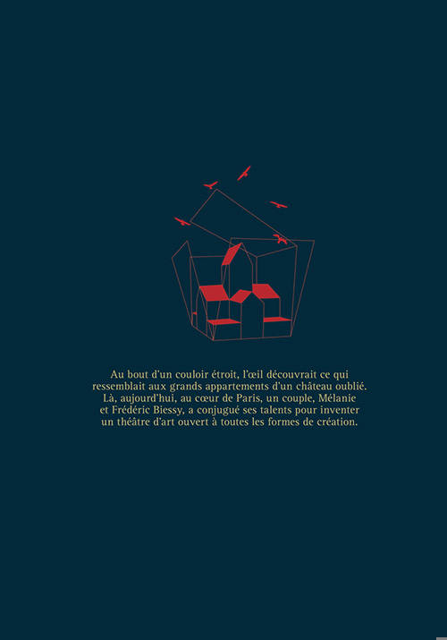Au bout d'un couloir étroit, l'oeil découvrant ce qui ressemblait aux grands appartements d'un château oublié. Là, aujourd'hui, au coeur de Paris, un couple, Mélanie et Frédéric Biessy, a conjugué ses talents pour inventer un théâtre d'art ouvert à toutes les formes de création.