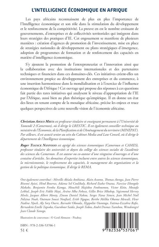 Les pays africains reconnaissent de plus en plus l'importance de l'Intelligence économique et son rôle dans la stimulation du développement et le renforcement de la compétitivité. La preuve en est le nombre croissant de gouvernements, d'entreprises et de collectivités territoriales qui intègrent dans leurs stratégies des pratiques d'IE. Cet engouement se manifeste de plusieurs manières: création d'agences de promotion de l'investissement, mise en place de stratégies nationales de développement ou plans stratégiques d'émergence, adoption de programmes de formation et de renforcement des capacités en matière d'intelligence économique. S'y ajoutent la promotion de l'entrepreneuriat et l'innovation ainsi que la collaboration avec des institutions internationales et des partenaires techniques et financiers dans ces domaines-clés. Ces initiatives créent-elles un environnement propice au développement des entreprises et du commerce, à une insertion harmonieuse dans la mondialisation et à l'exercice de l'influence économique de l'Afrique ? Cet ouvrage qui propose des réponses à ces questions fait partie des rares initiatives qui analysent le niveau d'appropriation de l'IE par l'Afrique, aussi bien au plan théorique qu'empirique. Il en donne un état des lieux en tenant compte de la mosaïque africaine, précise les enjeux et trace quelques perspectives de cette nouvelle vision de l'économie africaine.