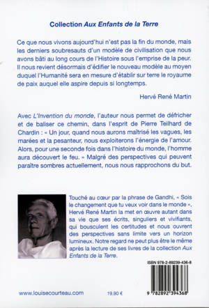 « Ce que nous vivons aujourd’hui n’est pas la fin du monde, mais les derniers soubresauts d’un modèle de civilisation que nous avons bâti au long cours de l’Histoire sous l’emprise de la peur. Il nous revient désormais d’édifier le nouveau modèle au moyen duquel l’Humanité sera en mesure d’établir sur terre le royaume de paix auquel elle aspire depuis si longtemps. » Hervé René Martin. Avec L'Invention du monde, l’auteur nous permet de défricher et baliser ce chemin, dans l'esprit de Pierre Teilhard de Chardin : « Un jour, quand nous aurons maîtrisé les vagues, les marées et la pesanteur, nous exploiterons l’énergie de l’amour. Alors, pour une seconde fois dans l’histoire du monde, l’homme aura découvert le feu. » Malgré des perspectives qui peuvent paraître sombres actuellement, nous nous rapprochons du but.