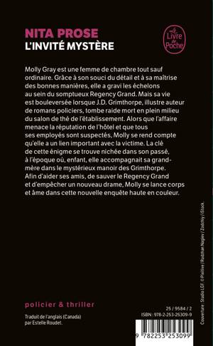 Molly Gray est une femme de chambre tout sauf ordinaire. Grâce à son souci du détail et à sa maîtrise des bonnes manières, elle a gravi les échelons au sein du somptueux Regency Grand. Mais sa vie est bouleversée lorsque J.D. Grimthorpe, illustre auteur de polars, tombe raide mort en plein milieu du salon de thé de l’établissement. Alors que l’affaire menace la réputation de l’hôtel et que tous ses employés sont suspectés, Molly se rend compte qu’elle a un lien important avec la victime. La clé de cette énigme se trouve nichée dans son passé, à l’époque où, enfant, elle accompagnait sa grand-mère dans le mystérieux manoir des Grimthorpe. Afin d’aider ses amis, de sauver l’hôtel et d’empêcher un nouveau drame, Molly va se lancer corps et âme dans cette nouvelle enquête haute en couleur.