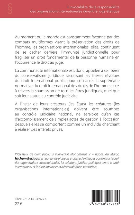 Au moment où le monde est constamment façonné par des combats multiformes visant la préservation des droits de l'homme, les organisations internationales, elles, continuent de se cacher derrière l'immunité juridictionnelle pour fragiliser un droit fondamental de la personne humaine en l'occurrence le droit au juge. La communauté internationale est, donc, appelée à se libérer du conservatisme juridique sacralisant les thèses révolues du droit international public pour consacrer la suprématie normative du droit international des droits de l'homme et ce, à travers la soumission de tous les êtres juridiques, quel que soit leur statut, au contrôle judiciaire. À l'instar de leurs créateurs (les États), les créatures (les organisations internationales) doivent être soumises au contrôle judiciaire national, ne serait-ce qu'en cas d'accomplissement de simples actes de gestion à l'occasion desquels elles se comportent comme un individu cherchant à réaliser des intérêts privés.