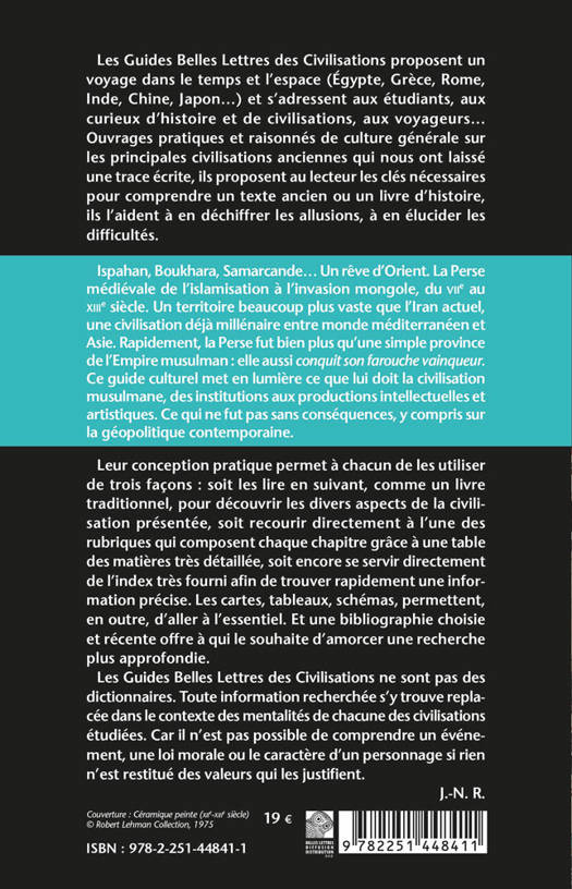 Ispahan, Boukhara, Samarcande... Un reve d'Orient. La Perse medievale de l'islamisation a l'invasion mongole, du VIIe au XIIIe siecle. Un territoire beaucoup plus vaste que l'Iran actuel, une civilisation deja millenaire entre monde mediterraneen et Asie. Rapidement, la Perse fut bien plus qu'une simple province de l'Empire musulman: elle aussi conquit son farouche vainqueur. Ce guide culturel met en lumiere ce que lui doit la civilisation musulmane, des institutions aux productions intellectuelles et artistiques. Ce qui ne fut pas sans consequences, y compris sur la geopolitique contemporaine.