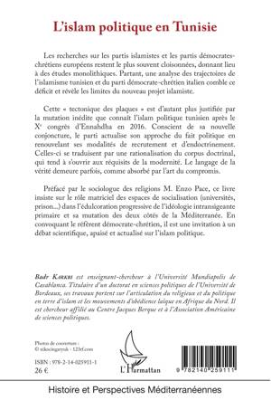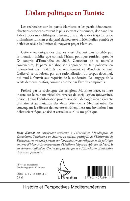 Les recherches sur les partis islamistes et les partis démocrates-chrétiens européens restent le plus souvent cloisonnées, donnant lieu à des études monolithiques. Partant, une analyse des trajectoires de l'islamisme tunisien et du parti démocrate-chrétien italien comble ce déficit et révèle les limites du nouveau projet islamiste. Cette tectonique des plaques est d'autant plus justifiée par la mutation inédite que connaît l'islam politique tunisien après le Xe congrès d'Ennahdha en 2016. Conscient de sa nouvelle conjoncture, le parti actualise son approche du fait politique en renouvelant ses modalités de recrutement et d'endoctrinement. Préfacé par le sociologue des religions M. Enzo Pace, ce livre insiste sur le rôle matriciel des espaces de socialisation (universités, prison...) dans l'édulcoration progressive de l'idéologie intransigeante primaire et sa mutation des deux côtés de la Méditerranée. En convoquant le réfèrent démocrate-chrétien, il est une invitation à un débat scientifique, apaisé et actualisé sur l'islam politique.