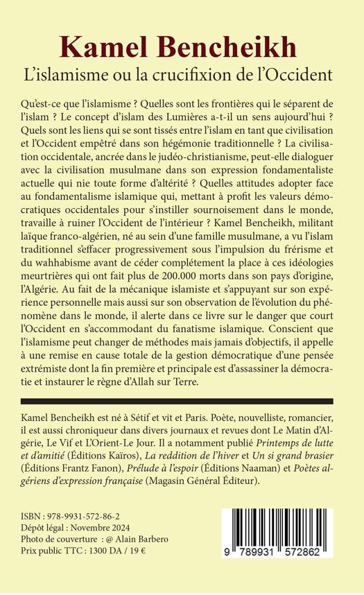 Qu’est-ce que l’islamisme ? Quelles sont les frontières qui le séparent de l’islam ? Le concept d’islam des Lumières a-t-il un sens aujourd’hui ? Quels sont les liens qui se sont tissés entre l’islam en tant que civilisation et l’Occident empêtré dans son hégémonie traditionnelle ? La civilisation occidentale, ancrée dans le judéo-christianisme, peut-elle dialoguer avec la civilisation musulmane dans son expression fondamentaliste actuelle qui nie toute forme d’altérité ? Quelles attitudes adopter face au fondamentalisme islamique qui, mettant à profit les valeurs démocratiques occidentales pour s’instiller sournoisement dans le monde, travaille à ruiner l’Occident de l’intérieur ? Kamel Bencheikh, militant laïque franco-algérien, né au sein d’une famille musulmane, a vu l’islam traditionnel s’effacer progressivement sous l’impulsion du frérisme et du wahhabisme avant de céder complétement la place à ces idéologies meurtrières qui ont fait plus de 200. 000 morts dans son pays d’origine, l’Algérie. Au fait de la mécanique islamiste et s’appuyant sur son expérience personnelle mais aussi sur son observation de l’évolution du phénomène dans le monde, il alerte dans ce livre sur le danger que court l’Occident en s’accommodant du fanatisme islamique. Conscient que l’islamisme peut changer de méthodes mais jamais d’objectifs, il appelle à une remise en cause totale de la gestion démocratique d’une pensée extrémiste dont la fin première et principale est d’assassiner la démocratie et instaurer le règne d’Allah sur Terre.