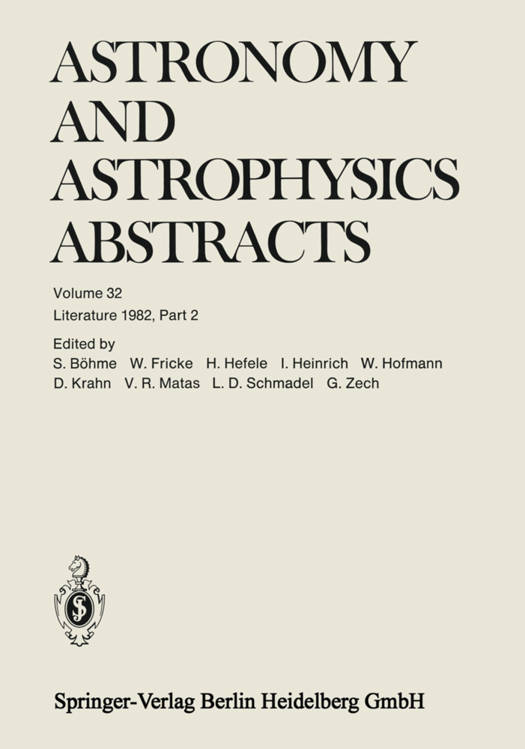 Astronomy and Astrophysics Abstracts, which has appeared in semi-annual volumes since 1969, is devoted to the recording, summarizing and indexing of astronomical publications throughout the world. It is prepared under the auspices of the International Astronomical Union (according to a resolution adopted at the 14th General Assembly in 1970). Astronomy and Astrophysics Abstracts aims to present a comprehensive documenta- tion of literature in all fields of astronomy and astrophysics. Every effort will be made to ensure that the average time interval between the date of receipt of the original literature and publication of the abstracts will not exceed eight months. This time interval is near to that achieved by monthly abstracting journals, compared to which our system of accumu- lating abstracts for about six months offers the advantage of greater convenience for the user. Volume 32 contains literature published in 1982 and received before February 11, 1983; some older literature which was received late and which is not recorded in earlier volumes is also included. We acknowledge with thanks contributions to this volume by Dr. J. Bou a, Prague, who surveyed journals and publications in Czech and supplied us with abstracts in English.