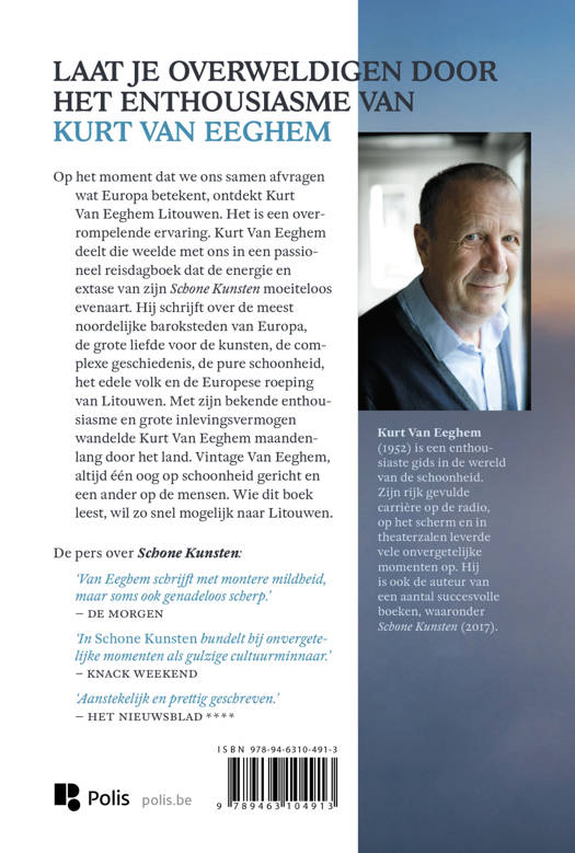 Op het moment dat we ons samen afvragen wat Europa betekent, ontdekt Kurt Van Eeghem Litouwen. Het is een overrompelende ervaring. Schoonheid in overvloed ligt er aan de rand van Europa op hem te wachten. Kurt Van Eeghem deelt die weelde met ons in een passioneel reisdagboek dat de energie en extase van zijn Schone Kunsten ruimschoots overstijgt. Hij schrijft over de meest noordelijke baroksteden van Europa, de grote liefde voor de kunsten, de complexe geschiedenis, de pure schoonheid, het edele volk en de Europese roeping van Litouwen. Met zijn bekende enthousiasme en grote inlevingsvermogen wandelde Kurt Van Eeghem maandenlang door het land. Vintage Van Eeghem, altijd één oog op schoonheid gericht en een ander op de mensen. Wie dit boek leest, wil zo snel mogelijk naar Litouwen.