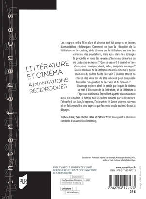 Les rapports entre littérature et cinéma sont ici compris en termes d’aimantations réciproques. Comment se joue la réception de la littérature par le cinéma, et du cinéma par la littérature, au sein des scénarios, des adaptations, mais aussi dans les échanges de procédés et dans les oeuvres d’écrivains-cinéastes ou de cinéastes-écrivains ?