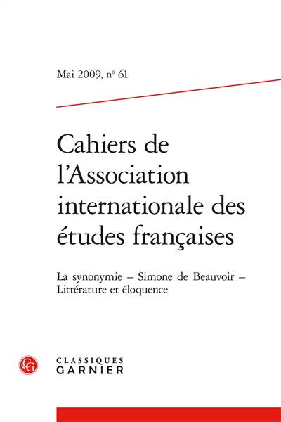 Fondée en 1949, l'Association internationale des études françaises oeuvre à la diffusion de la langue, de la littérature et de la culture françaises. Le présent numéro des CAIEF rend compte du 60e congrès annuel de l'association, consacré au phénomène de la synonymie, au niveau de la langue et au niveau de la parole, selon une dichotomie linguistique qui entraîne des réalisations communicatives différentes ; à Simone de Beauvoir, dont l'oeuvre est analysée sous plusieurs angles (la critique de la pensée de droite, le rôle de Beauvoir dans le débat sur le nouveau roman, les rapports entre Beauvoir et Stendhal...) ; à la redécouverte de la tradition rhétorique au cours des trente dernières années, et l'impact de cette redécouverte sur les études littéraires.
