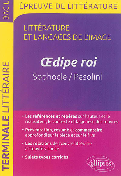 Cet ouvrage a été conçu pour donner aux élèves de Terminale L et aux professeurs une étude complète, précise et claire permettant de confronter la façon originale dont deux auteurs, Sophocle et Pier Paolo Pasolini, un dramaturge et un cinéaste, interprètent à vingt siècles de distance l’un des mythes les plus connus et les plus adaptés de la mythologie. Ce travail vise tout à la fois la constitution d’une culture personnelle ouverte et la réussite à l’épreuve du baccalauréat.