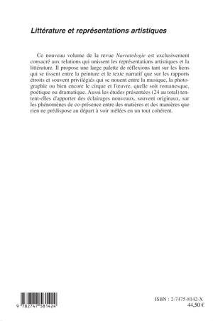 Ce nouveau volume de la revue Narratologie est exclusivement consacré aux relations qui unissent les représentations artistiques et la littérature. Il propose une large palette de réflexions tant sur les liens qui se tissent entre la musique, la photographie ou bien encore le cirque et l'oeuvre, qu'elle soit romanesque, poétique ou dramatique.