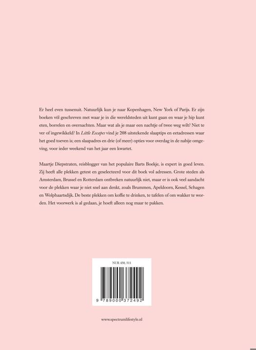 Er even tussenuit knijpen, spijbelen van het dagelijks leven - misschien zelfs helemaal impulsief. Soms is het precies wat je nodig hebt. Kinderen bij opa en oma en gewoon gaan! Met je partner, vriendinnen of lekker helemaal alleen. Daar hoef je helemaal niet ver voor te gaan. In Nederland en Vlaanderen zijn er 208 uitstekende adresjes waar het goed toeven is. Maartje Diepstraten, reisblogger van het populaire Barts Boekje, is expert in goed leven, luieren en genieten. Zij heeft alle plekken persoonlijk getest en geselecteerd voor deze gids. Grote steden als Amsterdam en Rotterdam ontbreken natuurlijk niet maar er is vooral veel aandacht voor de plekken waar je niet snel aan denkt zoals Brummen, Apeldoorn, Kessel, Schagel, Wolphaartsdijk. De beste plekken om koffie te drinken, eten of om wakker te worden. Het voorwerk is al gedaan, je hoeft alleen nog maar de tas te pakken.