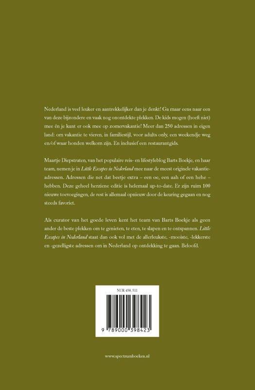 Maartje Diepstraten, van het populaire reis- en lifestyleblog Barts Boekje, neemt je in Little Escapes in Nederland mee naar meer dan 225 originele vakantieadressen. Adressen die net dat beetje extra – een oe, een aah of een hehe – hebben voor je kids, je hond en/of jezelf.