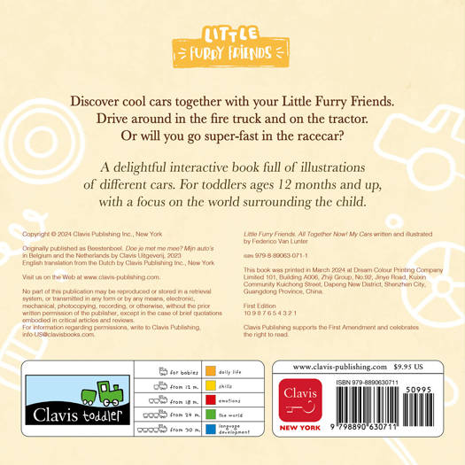 This book is part of Clavis Toddler, a series specifically tailored to children ages 0-3. Through a color-coded train system, parents and caregivers can easily identify the targeted age group and skill highlighted in each title, ensuring an age-appropriate and enriching reading experience.