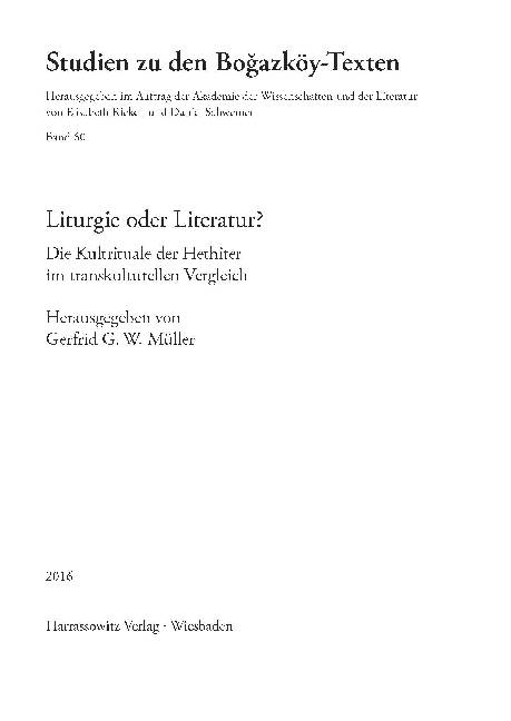 Die Kultrituale Der Hethiter Im Transkulturellen Vergleich. Akten Eines Werkstattgesprachs an Der Akademie Der Wissenschaften Und Der Literatur. Mainz, 2.-3. Dezember 2010