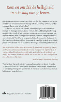 Ingekaderd in de beschrijving van een gewone dag, verkent dit boek het dagelijks leven door de lens van liturgie, kleine praktijken en gewoonten die ons vormen. Elk hoofdstuk kijkt naar iets – haar bed opmaken, haar tanden poetsen, haar sleutels kwijtraken – wat de schrijfster elke dag doet. Op basis van de diversiteit van haar leven als Anglicaanse priester, vriend, echtgenote en moeder, ontwikkelt Tish Warren een praktische theologie van het alledaagse. Elke activiteit is verbonden met een spirituele oefening en een aspect van de zondagse kerkdienst.