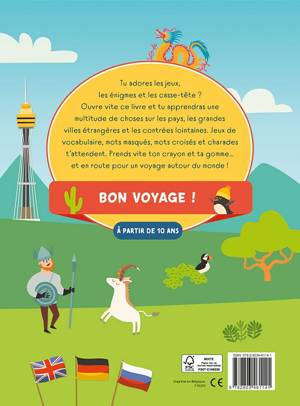 Tu adores les jeux, les énigmes et les casse-tête ? Ouvre vite ce livre et tu apprendras une multitude de choses sur les pays, les grandes villes étrangères et les contrées lointaines. Jeux de vocabulaire, mots masqués, mots croisés et charades t'attendent. Prends vite ton crayon et ta gomme... et en route pour un voyage autour du monde !