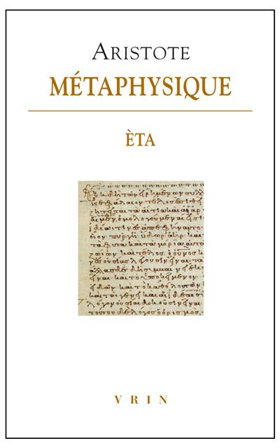 A la question centrale de la philosophie premiere, qu'est-ce que l'etre?, le Huitieme livre de la Metaphysique d'Aristote (le livre Eta) ne se contente pas de repondre que l'etre au sens premier est la substance, l'ousia. Il s'interroge egalement sur ce qui fait l'unite des composes de matiere et de forme, et en premier lieu des composes substantiels. Il porte par consequent une attention particuliere a l'unite de la substance comme forme et a celle de la definition qui l'exprime, mais aussi a la matiere, entendue comme substance en puissance. Aristote opere ainsi un tournant decisif au coeur de sa propre ontologie, en formulant la question de l'unite des substances composees, de la matiere et de la forme, en termes de puissance et d'acte. La presente traduction, inedite, et le commentaire qui l'accompagne donnent acces a un texte essentiel pour la comprehension du projet metaphysique d'Aristote.