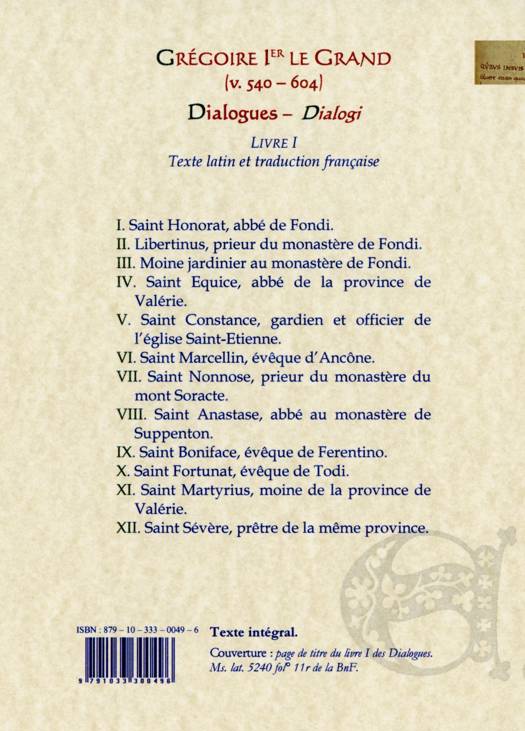 Texte latin et traduction française du livre I des Dialogues. Présentation et bibliographie.