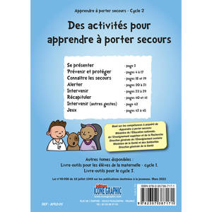 Livre-outils destiné aux activités de l'enfant du cycle 2 de la formation "Apprendre à Porter Secours". Ce livre-outil fait partie de la mallette "Apprendre à porter secours à l'école" - cycle 2. SOMMAIRE : Se présenter, Prévenir et protéger, Connaître les secours, Alerter, Intervenir, Récapituler, Intervenir, Jeux // 5ème édition : mars 2022 - Format : 15 x 21 x 0,3 cm - 52 pages - Réf APS2-05