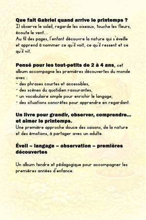 À travers des scènes simples du printemps, votre enfant apprend à :