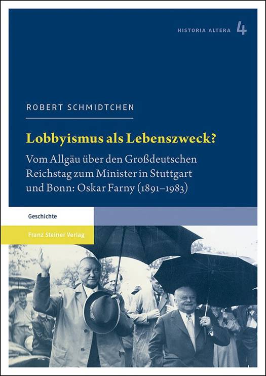 Adenauer, Heuss, Kiesinger, Lubke, Rommel - grosse Namen der deutschen Geschichte mit einer Gemeinsamkeit: Alle reisten ins wurttembergische Allgau um Oskar Farny zu treffen. Nach dem Ersten Weltkrieg begann Farnys politische Karriere, die Wahl in den Stuttgarter Landtag bildete 1920 den vorlaufigen Hohepunkt. Nach kurzester Zeit legte er sein Mandat zu Gunsten wirtschaftlicher Tatigkeiten nieder. Von 1933 bis 1945 sass er als parteiloser Hospitant der NSDAP-Fraktion im Reichstag. Nach Kriegsende blieb ihm die angestrebte CDU-Mitgliedschaft lange verwehrt, so dass er zunachst in die CSU eintrat. Gebhard Muller, Ministerprasident Baden-Wurttembergs, ermoglichte Farny ab 1953 eine zweite politische Karriere. Im selben Jahr wurde er Abgeordneter des Deutschen Bundestages und kurz darauf Landesminister von Baden-Wurttemberg, sogar das Amt des Ministerprasidenten Baden-Wurttembergs wurde ihm 1958 angetragen. 1960 trat er auf eigene Veranlassung von allen hoheren Amtern zuruck. Robert Schmidtchen zeichnet die ungewohnliche Karriere eines Politikers aus der zweiten Reihe nach: ein Lobbyist mit Mandat, der als einziger Abgeordneter des Grossdeutschen Reichstags in den Bundestag gelangte.