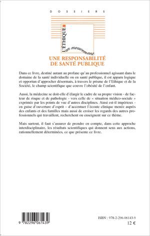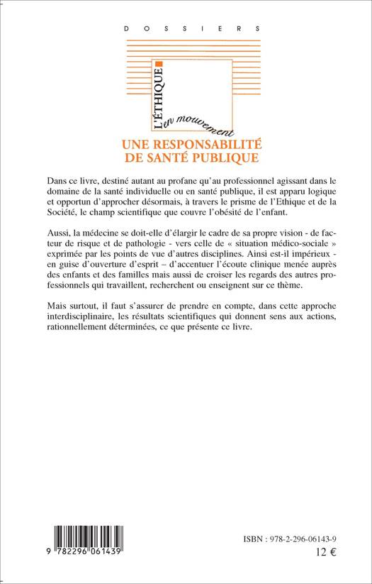 L'obésité pédiatrique en France comme dans les autres pays européens et l'Amérique du Nord est considérée aujourd'hui comme un enjeu majeur de santé publique. L'obésité pédiatrique touche à nos notions les plus intimes, à nos représentations sociales et à l'acceptation de l'Autre, même enfant. Ce sont les notions mêmes de normal et de pathologique qui sont questionnées par cette réflexion.