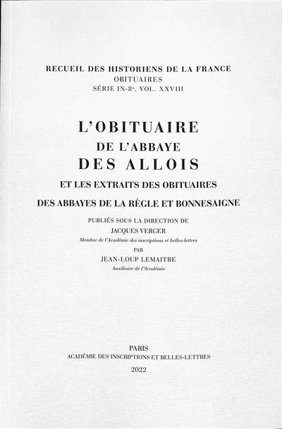 Une retranscription de l'obituaire de l'abbaye des Allois, rédigé entre la fin du XIIIe siècle et le XVIIe siècle. Ce registre a été étudié et commenté par des érudits au cours des XVIIe et XVIIIe siècles. L'ensemble de ces matériaux est rassemblé dans cette édition critique et complétés par des fragments de la documentation nécrologique de deux autres monastères féminins du diocèse de Limoges.
