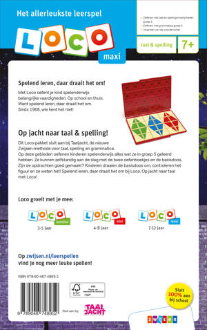 Inhoud: • Loco maxi basisdoos • Opdrachtenboekje Loco maxi Taaljacht Taal M5 / E5 • Opdrachtenboekje Loco maxi Taaljacht Spelling M5 / E5 • Loco informatiebrochure
