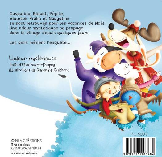 Une histoire drôle qui associe humour, ambiance de fête et pédagogie. L'odorat est mis à l'honneur dans cet album illustré par Sandrine Guichard et écrit Elsa Faure-Pompey. Des animaux rigolos au caractère bien affirmé , une enquête, une odeur délicieuse, le tout dans un décor d'hiver,