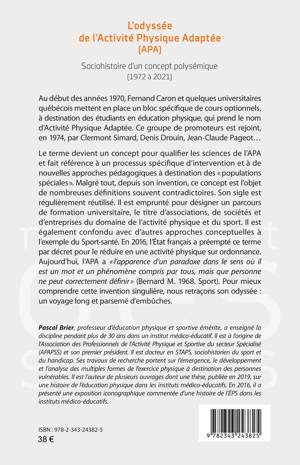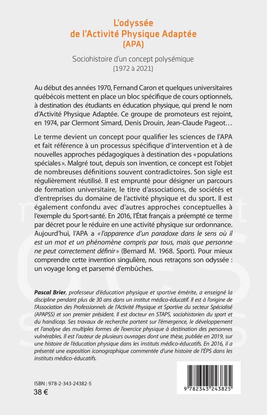 Au début des années 1970, Fernand Caron et quelques universitaires québécois mettent en place un bloc spécifique de cours optionnels, à destination des étudiants en éducation physique, qui prend le nom d’Activité Physique Adaptée. Le terme devient un concept pour qualifier les sciences de l’APA et fait référence à un processus spécifique d’intervention et à de nouvelles approches pédagogiques à destination des « populations spéciales ». En 2016, l’État français a préempté ce terme par décret pour le réduire en une activité physique sur ordonnance. Aujourd’hui, l’APA a « l’apparence d’un paradoxe dans le sens où il est un mot et un phénomène compris par tous, mais que personne ne peut correctement définir » (Bernard M. 1968. Sport). Pour mieux comprendre cette invention singulière, nous retraçons son odyssée : un voyage long et parsemé d’embûches.
