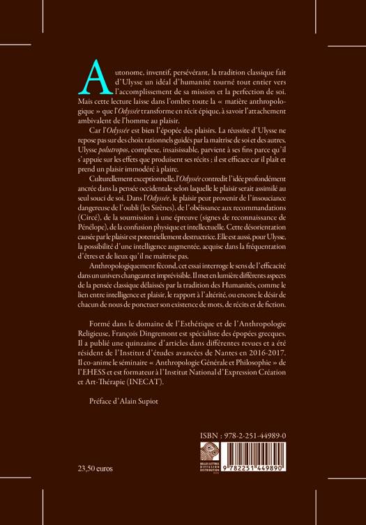 Autonome, inventif, persévérant, la tradition classique fait d’Ulysse un idéal d’humanité tourné tout entier vers l’accomplissement de sa mission et la perfection de soi. Mais cette lecture laisse dans l’ombre toute la « matière anthropologique » que l’Odyssée transforme en récit épique, à savoir l’attachement ambivalent de l’homme au plaisir.